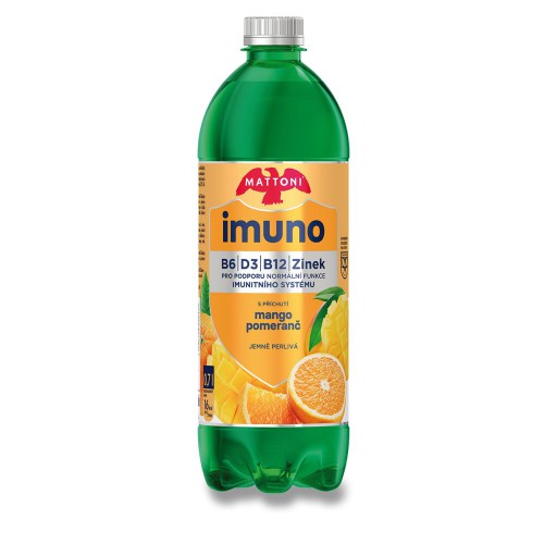 Ochucená minerální voda Mattoni Imuno s vyváženým poměrem minerálů a stopových prvků s příchutí manga a pomeranče. Objem 700 ml.